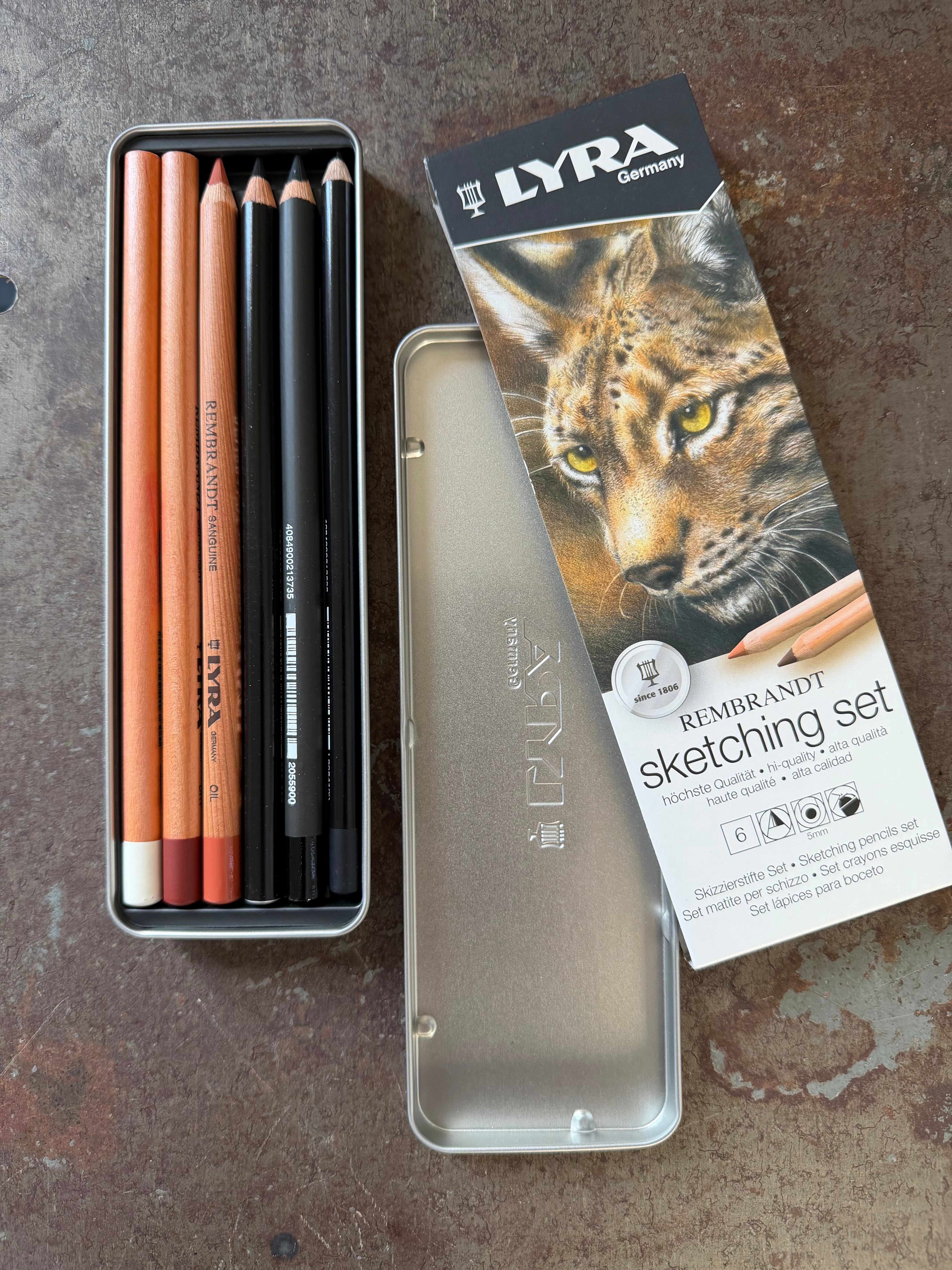 lyra rembrandt provides a high-quality finish on all surfaces, especially on rougher textures that are good at retaining pigments. round-shaped pencils with extra strong lead, made from PEFC certified cedarwood.