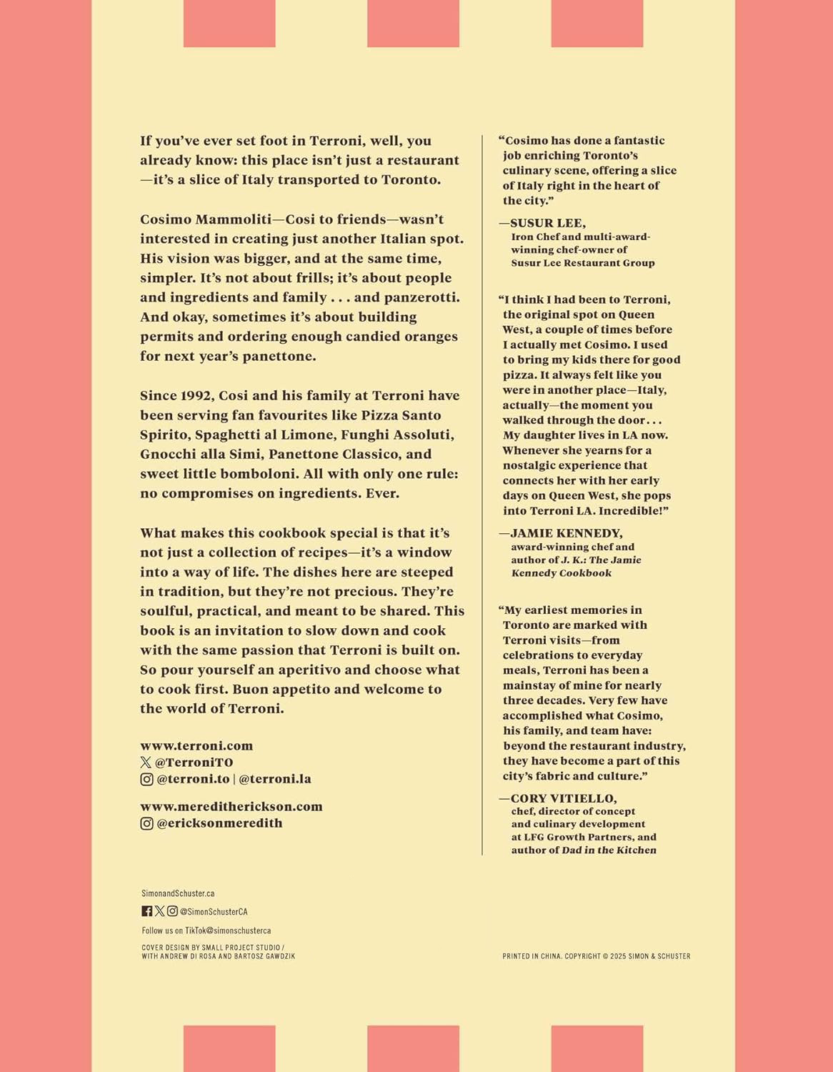 la cucina di terroni opens the vault and generously offers readers over 100 of the restaurants’ most beloved recipes. every recipe was gorgeously photographed at various Terroni locales, giving the book a visual sense of the beauty and energy of the Terroni spaces.