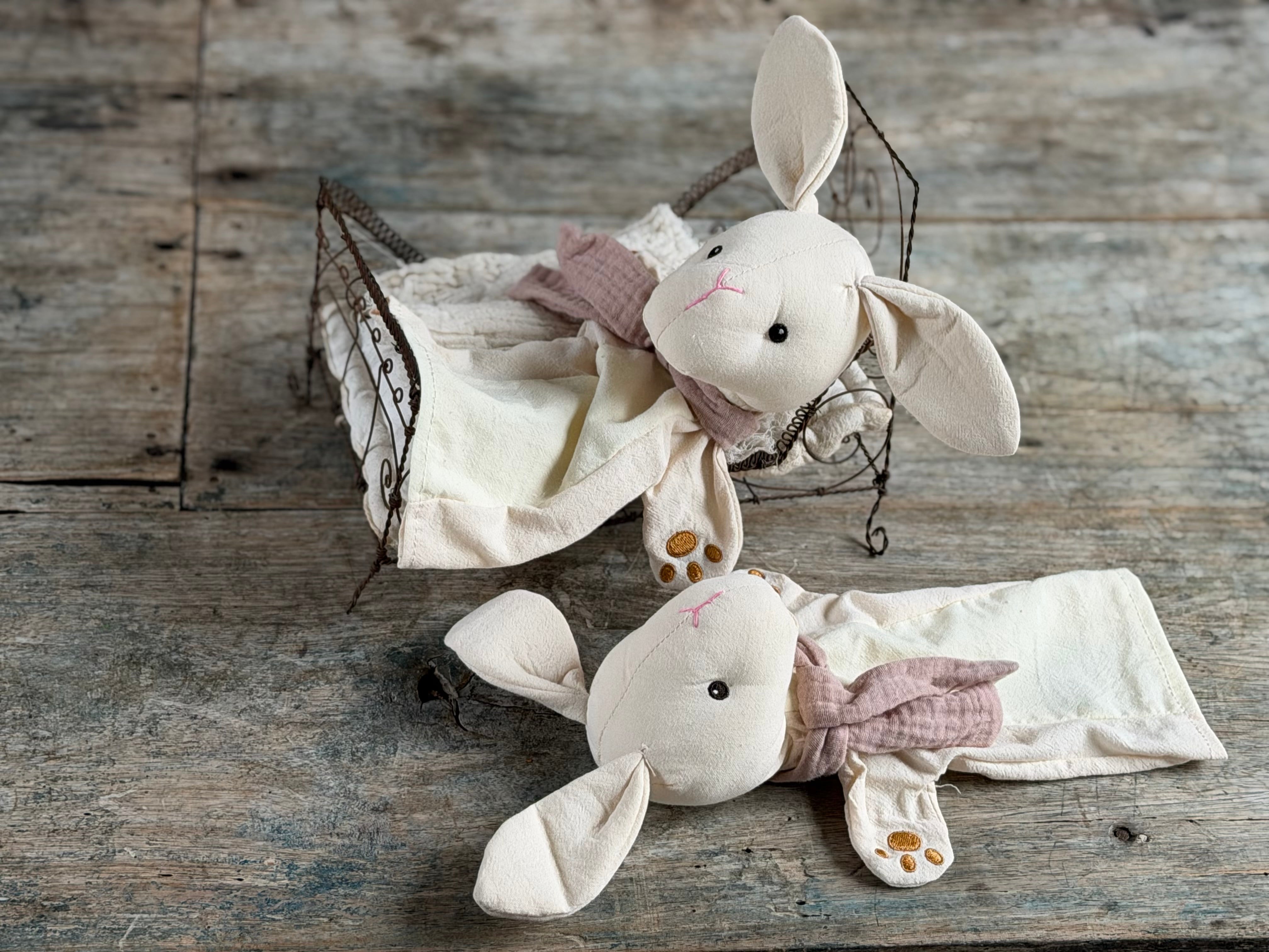adorable rabbit hand puppets made from 100% cotton, suitable to wash at 30 degrees