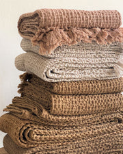 super soft, waffle textured cotton quilts, in six muted colours and three sizes. made in portugal.