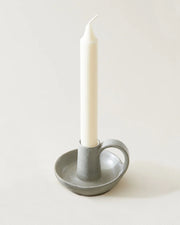 a timeless fairtrade ceramic candlestick handmade by artisans in nepal, available in two colours, pebble grey and speckled cream.