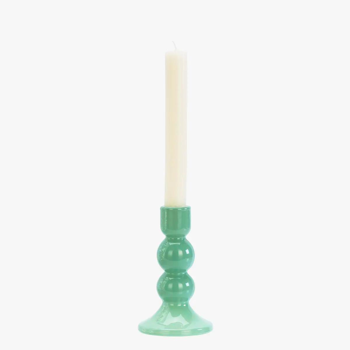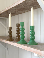 glass candle holders in green and taupe