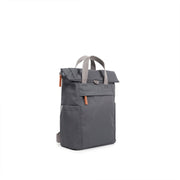 made using recycled canvas made from plastic waste and coated to make it water-resistant, these minimalist roll-top backpacks are weather-resistant, lightweight, and durable.