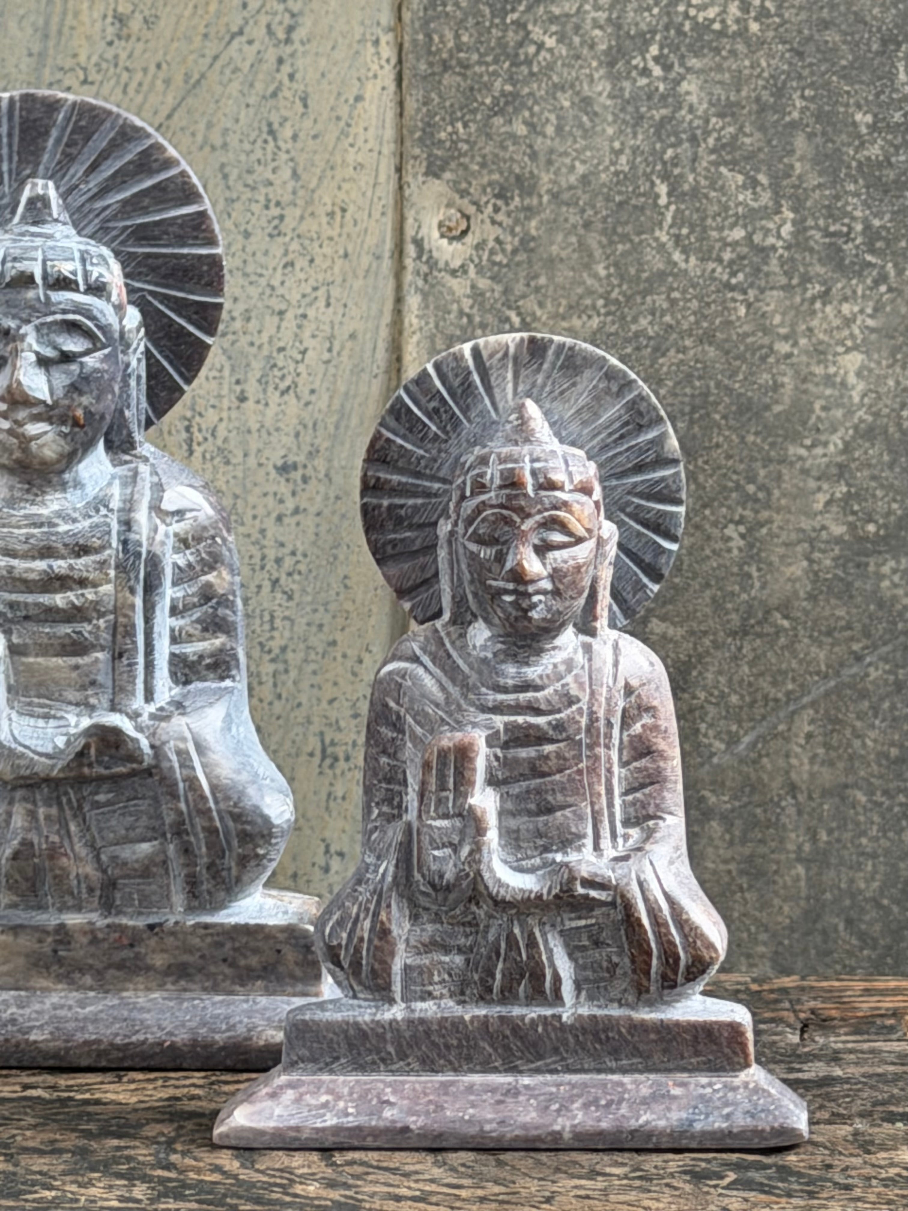 our hand carved soapstone buddha should enlighten your life. each one is unique and carved from natural soapstone, so colours vary and sizes are approximate