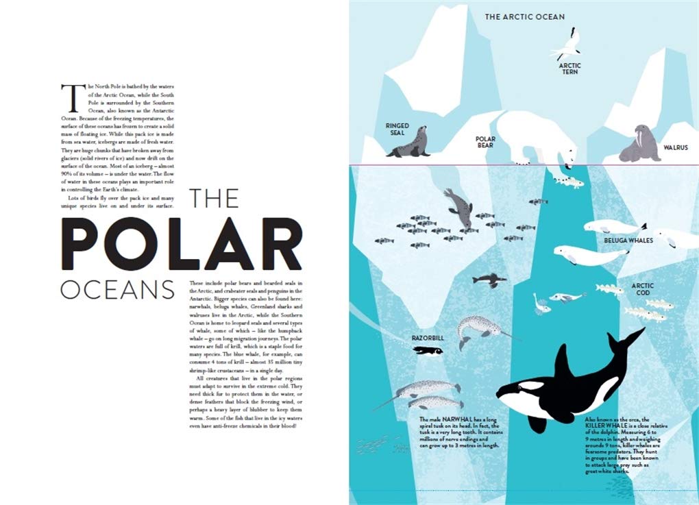 this gorgeous, large-format book is filled with clever cutouts exploring the ocean, from the shoreline to the murkiest depths. this fact-filled journey is illustrated by hélène druvert