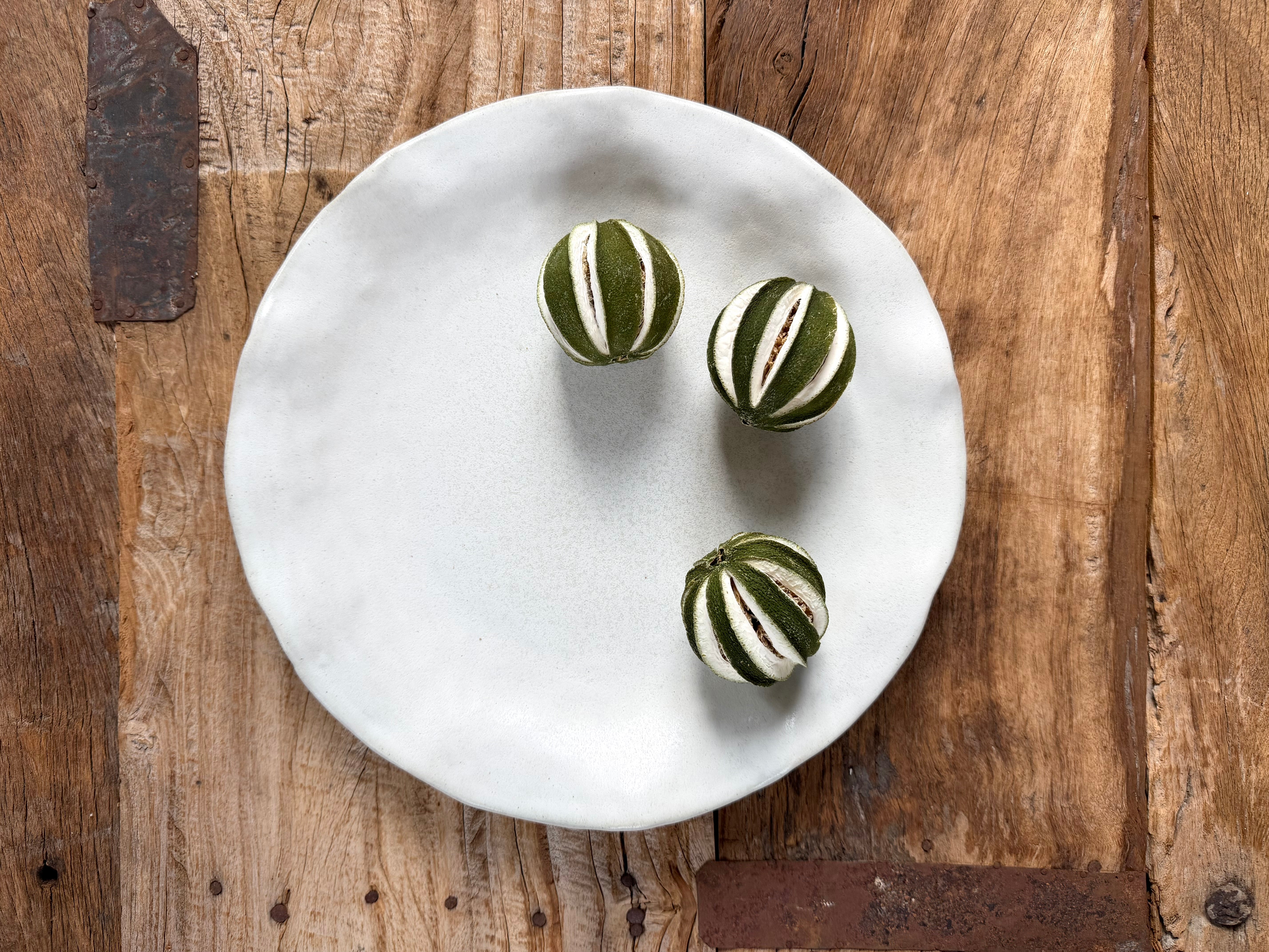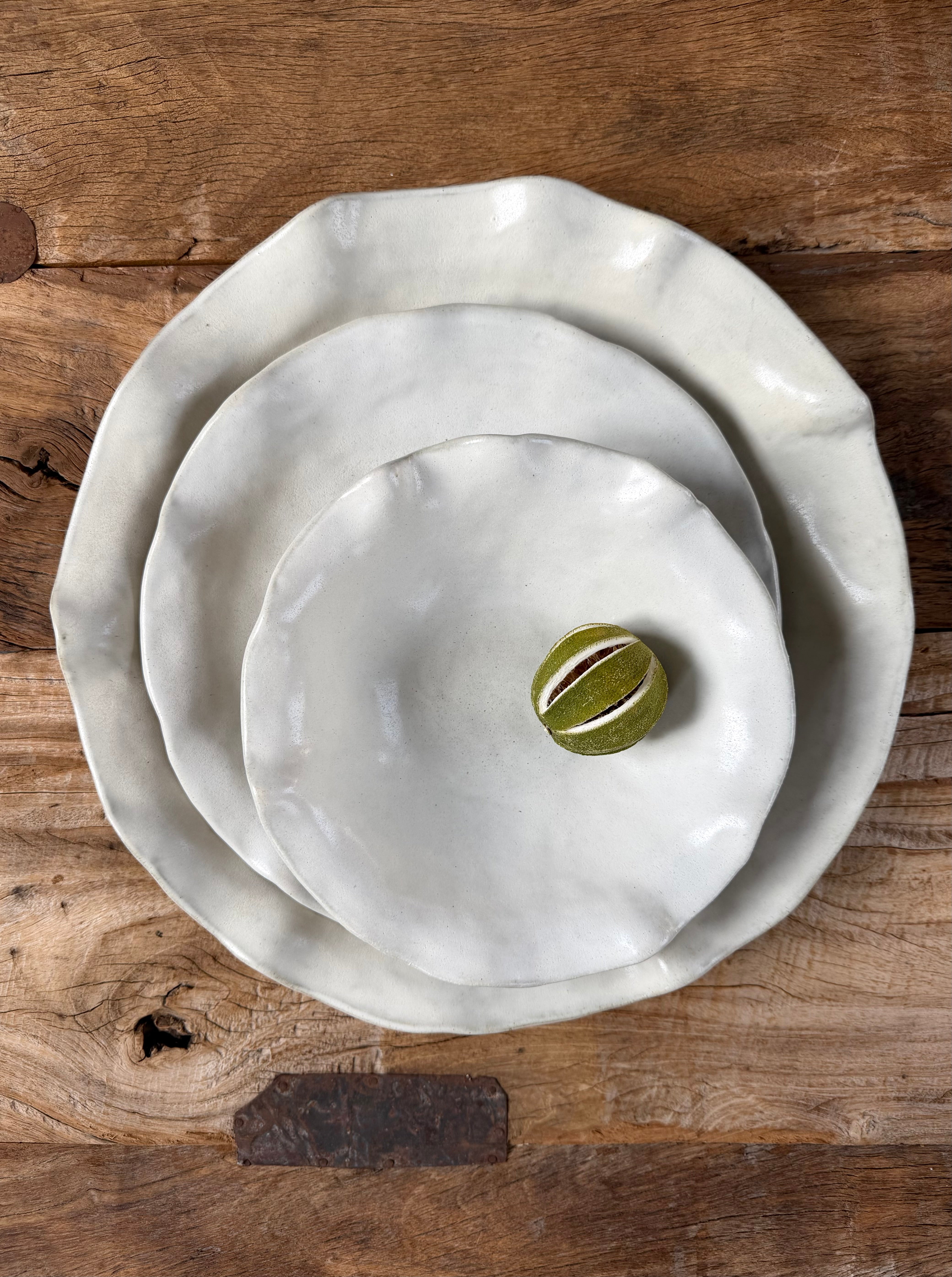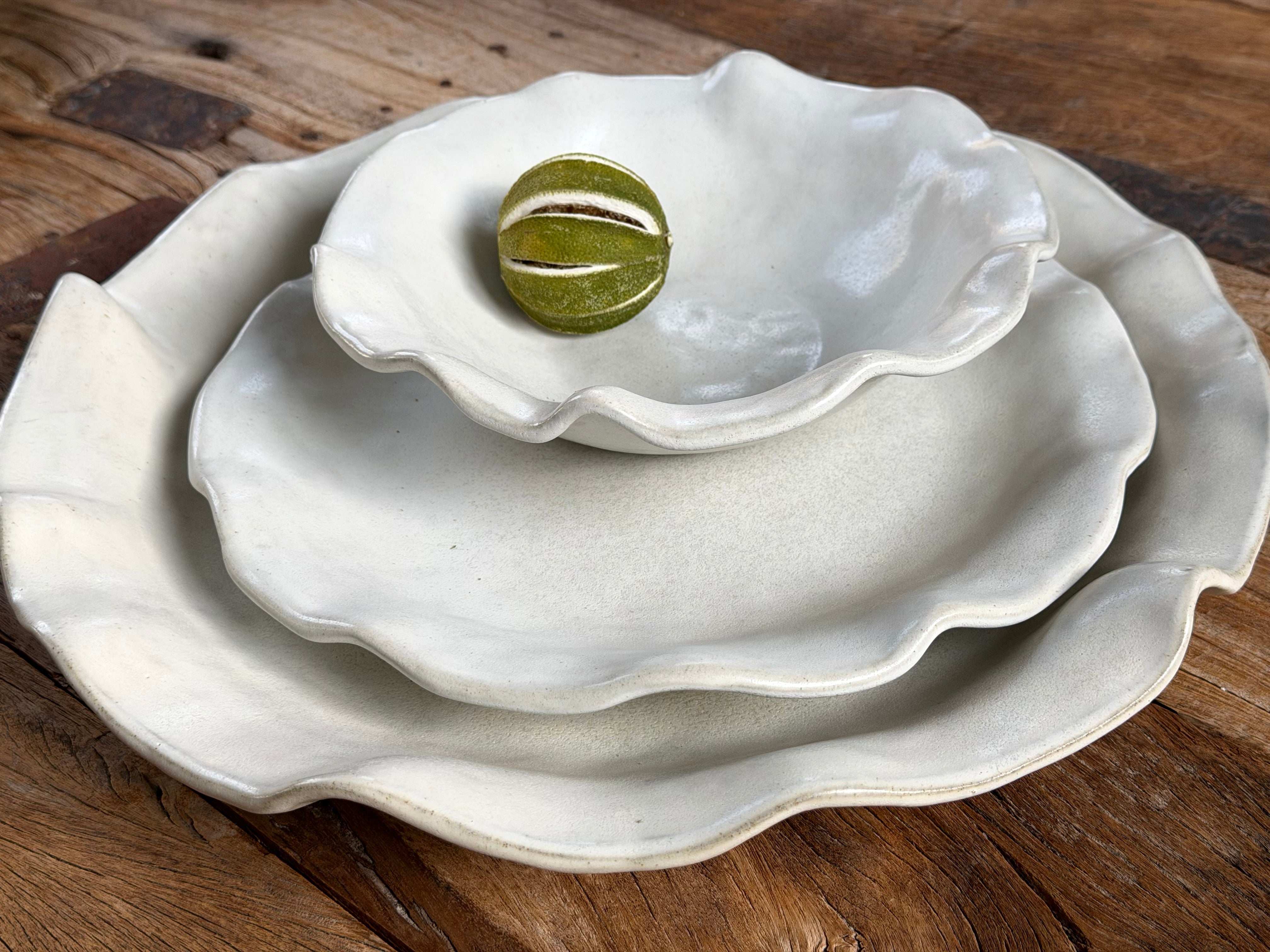 large serving bowl - 37 cm diameter x 5 cm tallsmall bowl - 23 cm diameter x 5 cm tallplate - 28.5 cm diameter x 3 cm tall