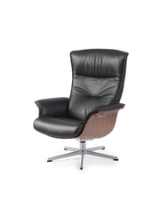 it comes covered in classic black leather or super soft yet hard-wearing bouclé fabric, with your choice of black or aluminium base.