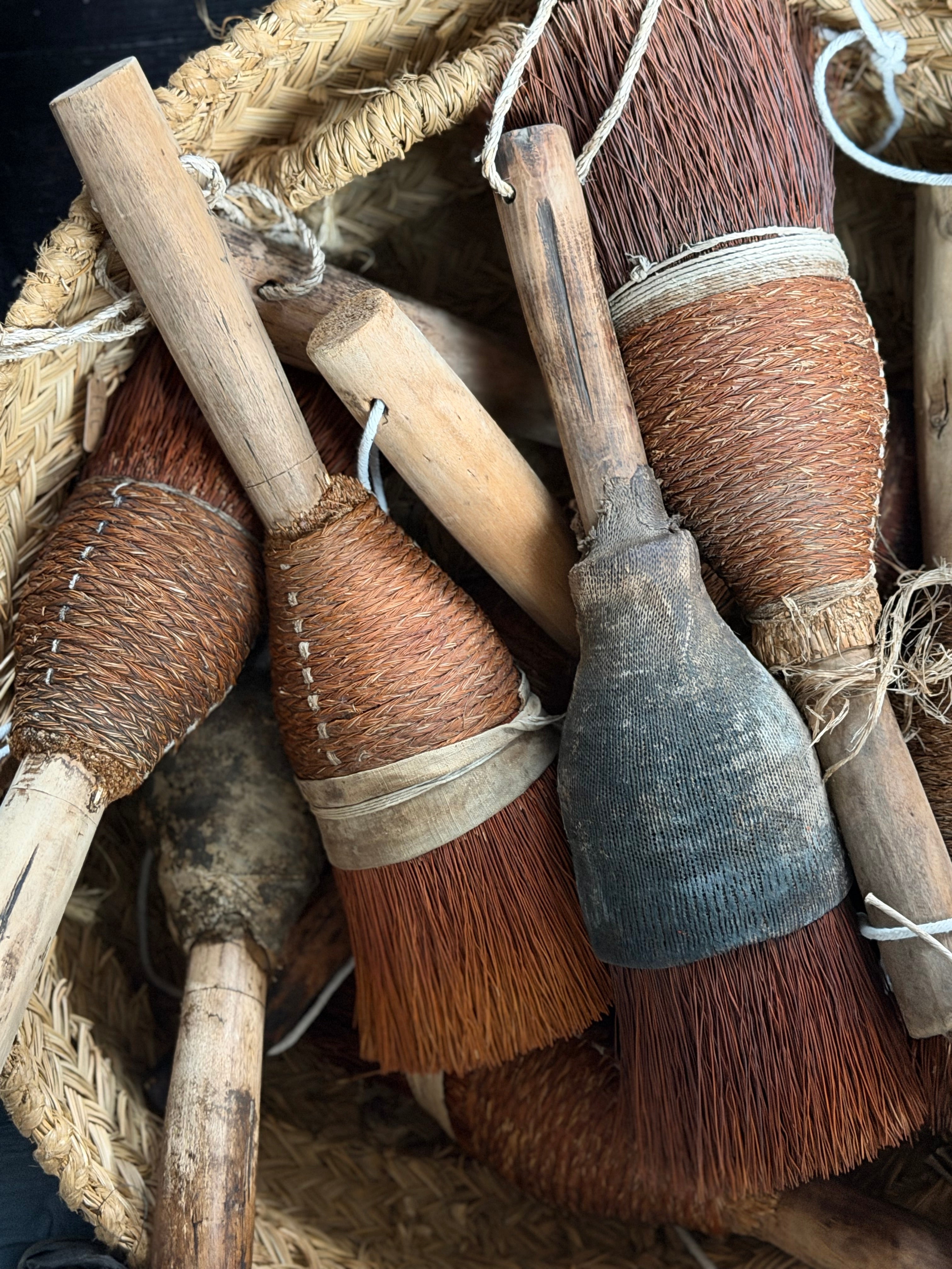 we were very excited when we came across these old household brushes from rural china. they’re made from natural fibres which have aged to a variety of beautiful earthy hues.