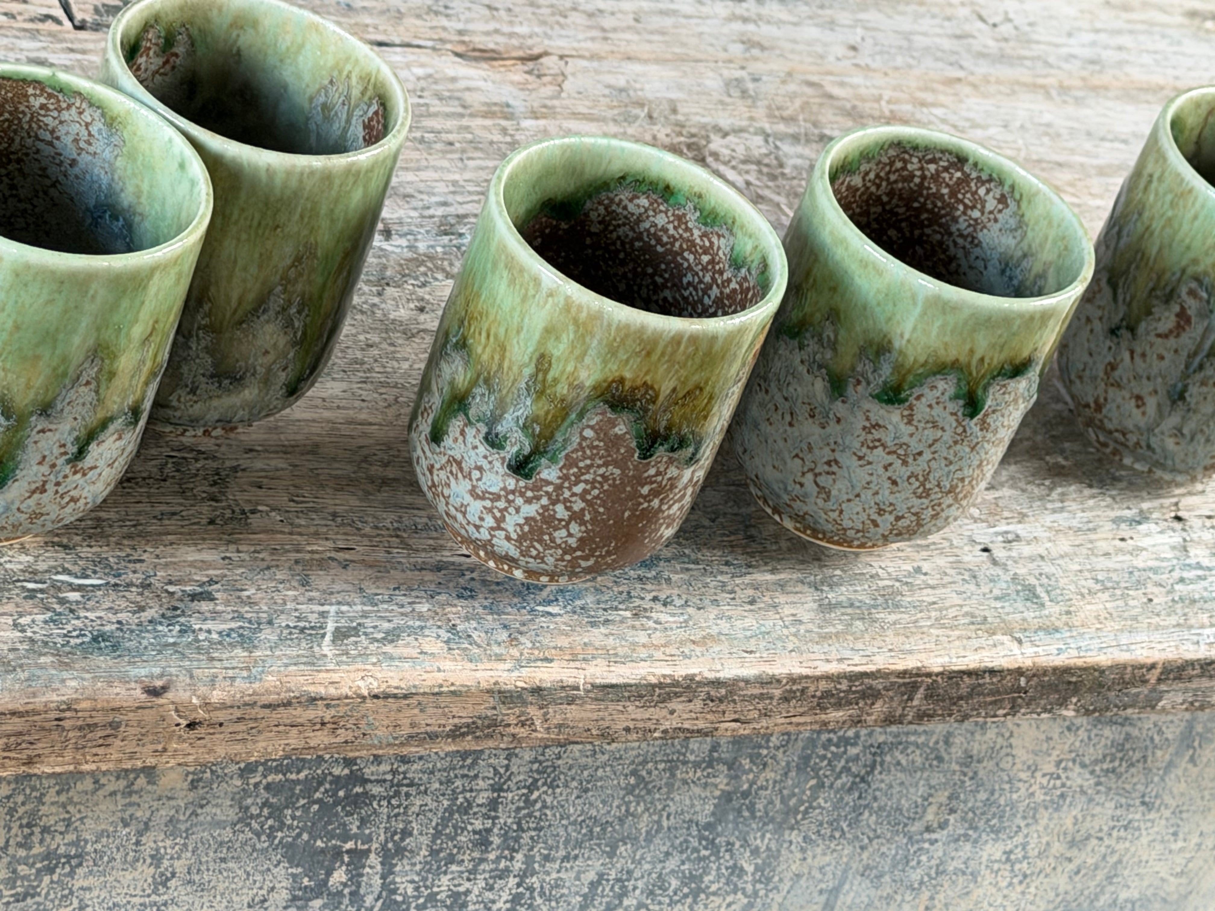 traditional japanese teacups in a striking drip glaze